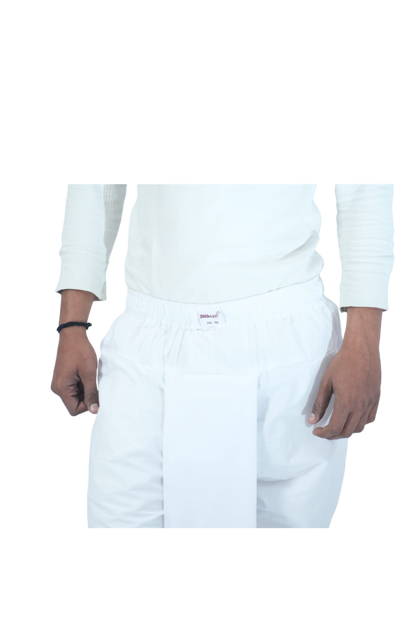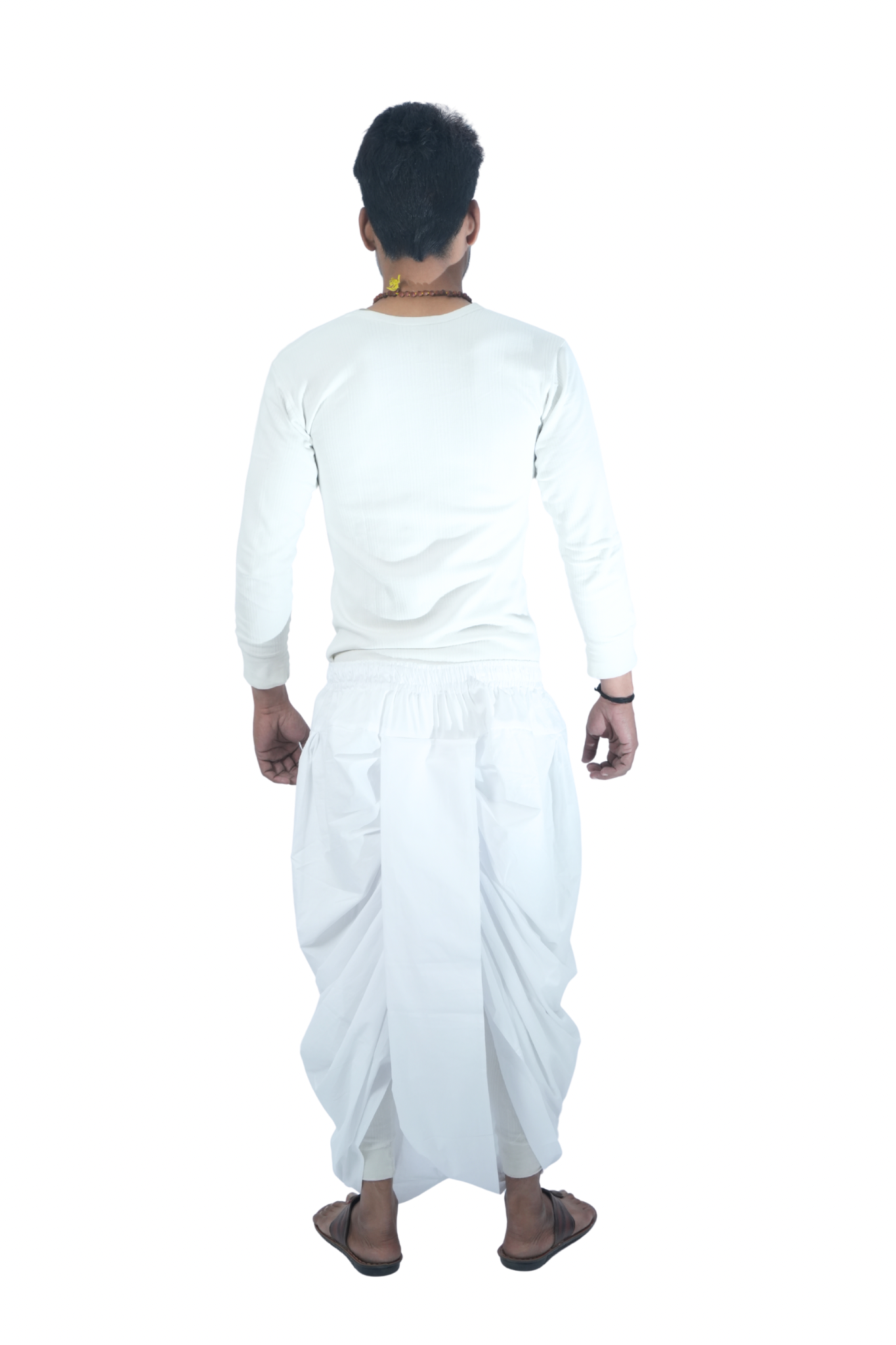 कॉटन रेडी धोती रोज़मर्रा के आराम और सुविधा को ध्यान में रखकर बनाई गई है। शुद्ध कॉटन कपड़े से बनी यह धोती इलास्टिक कमर के साथ आती है, जिससे बिना बांधने की झंझट के आसानी से पहनी जा सकती है। इसका ढीला और आरामदायक फिट इसे पूजा, मंदिर दर्शन या घर पर पहनने के लिए उपयुक्त बनाता है।