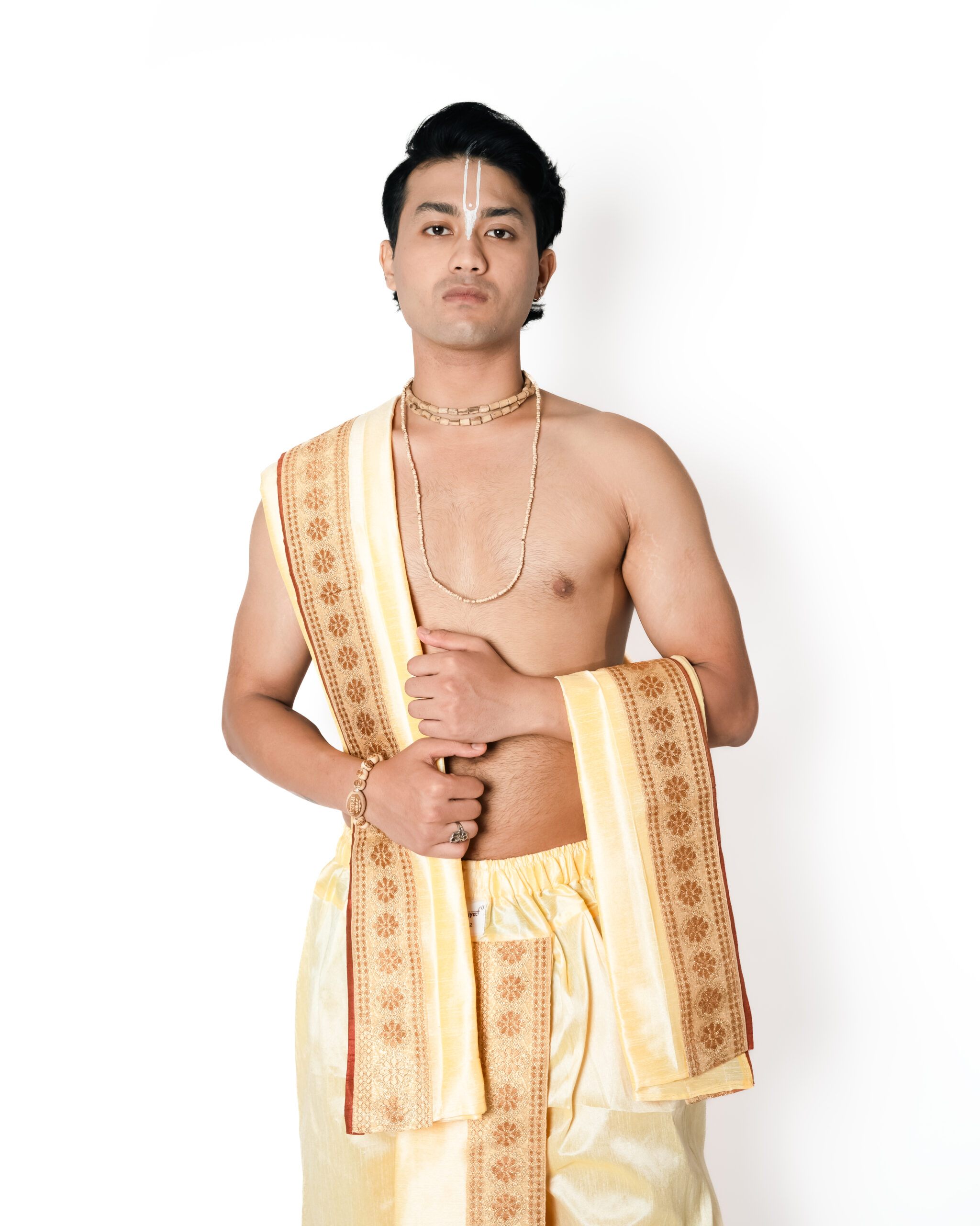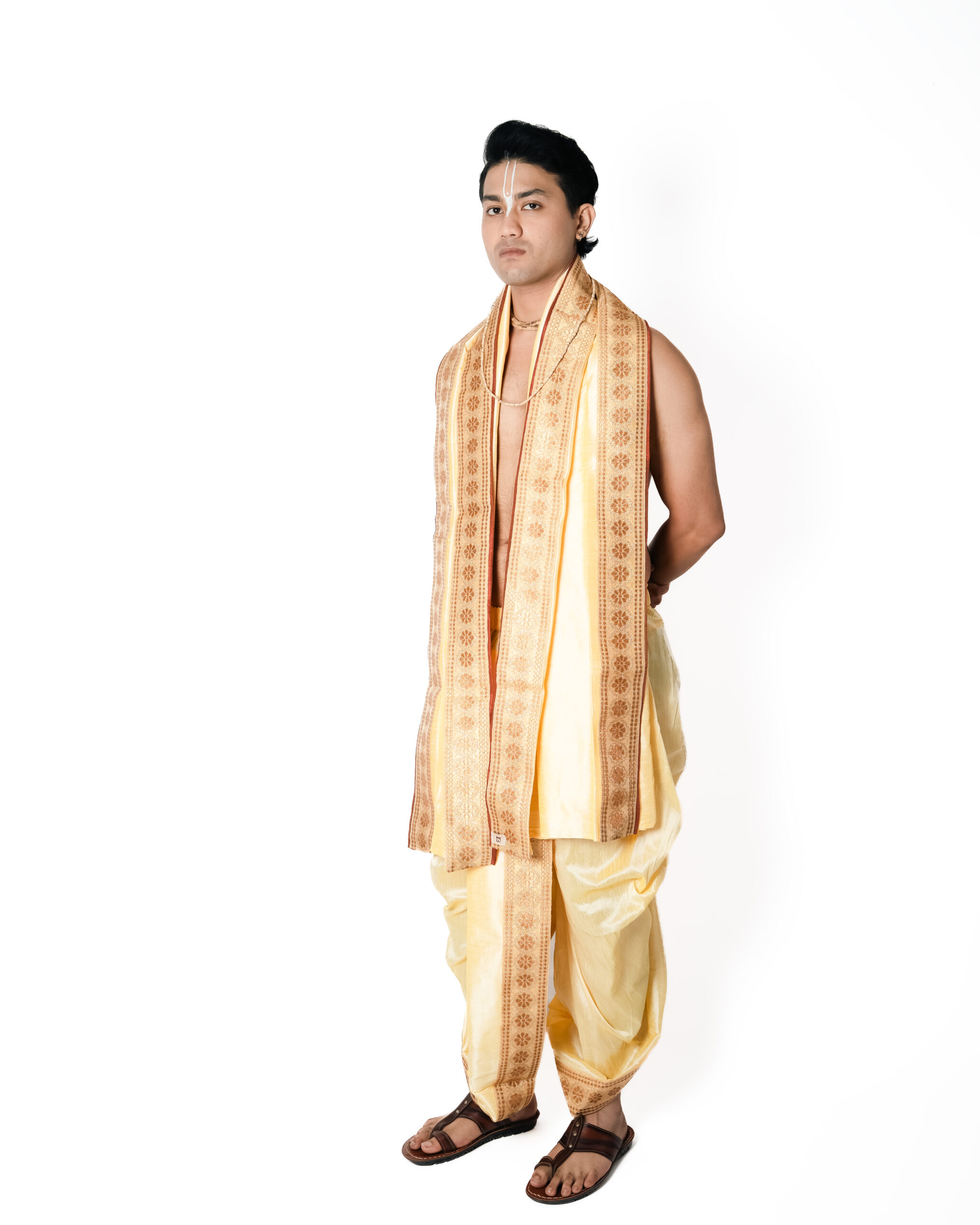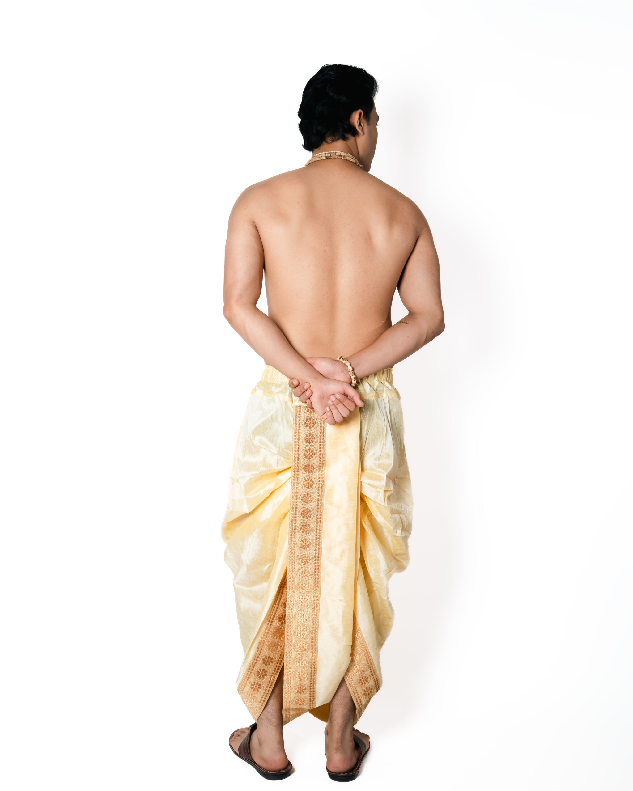 Includes: One Dhoti and One Dupatta. हिरण्य धोती–दुपट्टा सेट शालीनता और कारीगरी को दर्शाता है, हल्के और सरल रूप में।