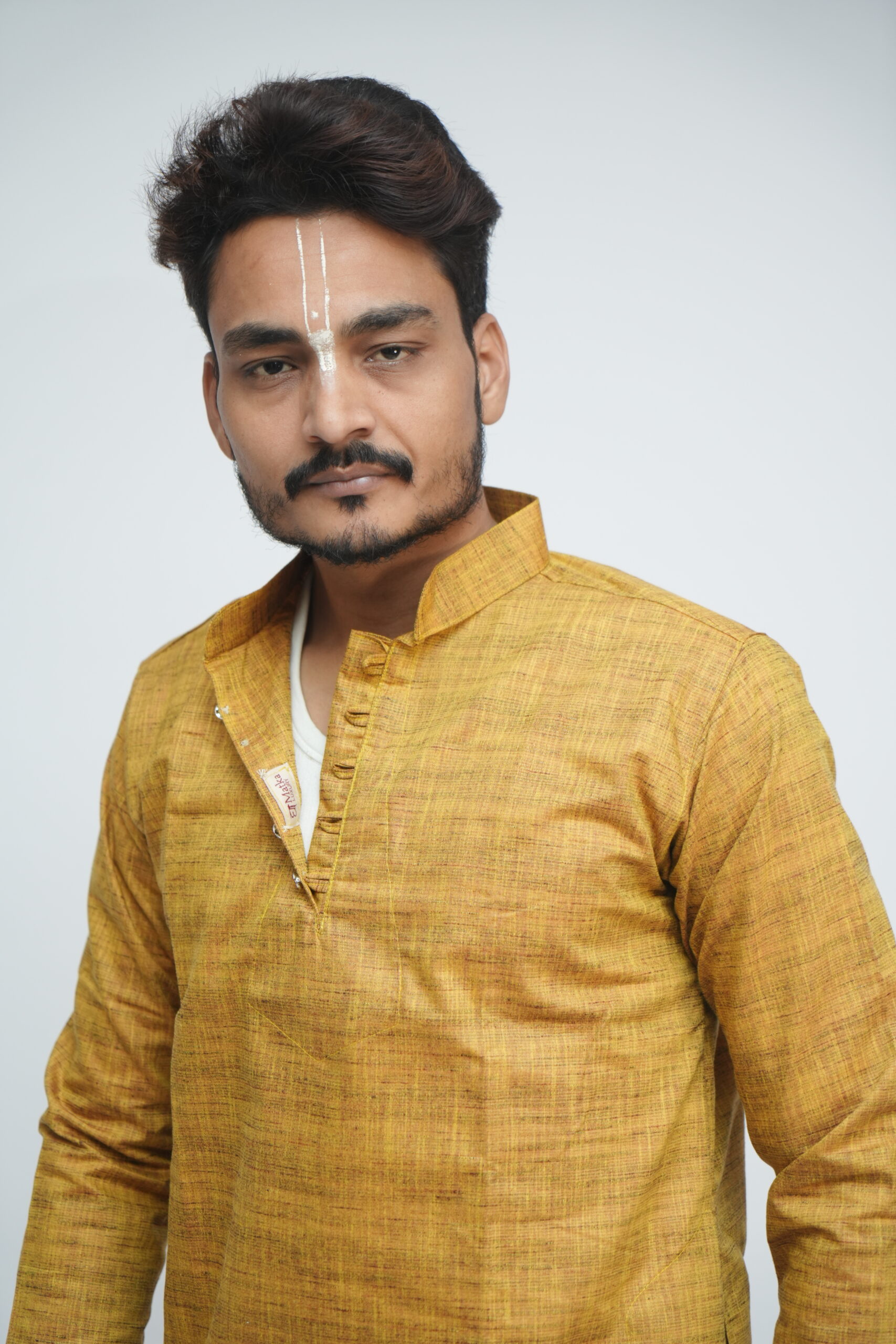 This kurta brings together two heritage fabrics — matka silk, known for its raw texture, and khadi, valued for its breathability and comfort. The blend creates a balanced fabric that feels grounded yet refined, suited for modern traditional wear.
