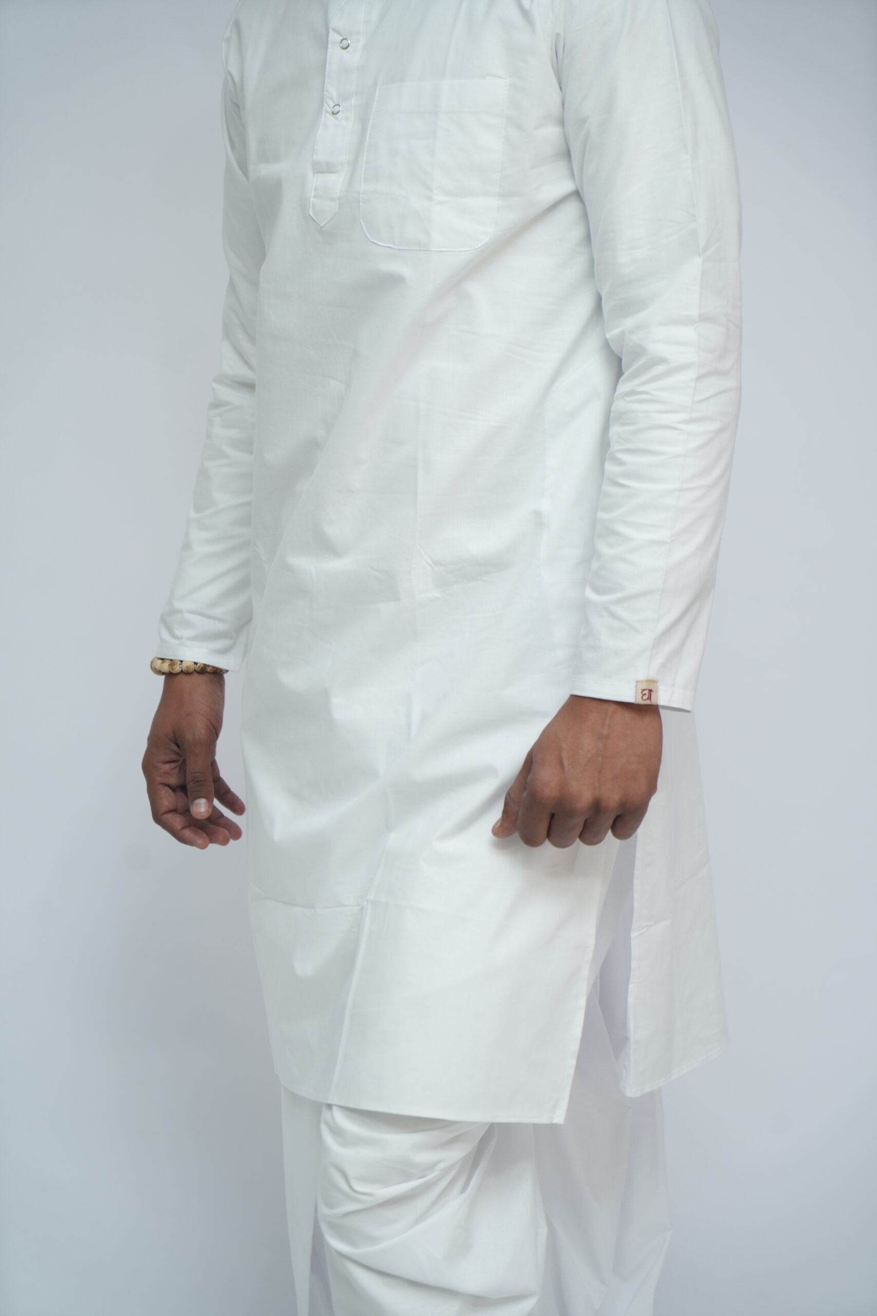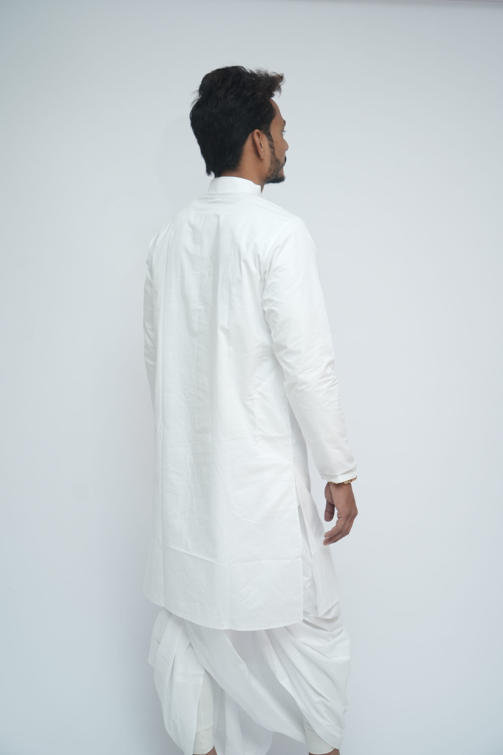 The White Cotton Kurta is crafted from breathable cotton fabric, offering all-day comfort and ease of movement. Designed in a straight, regular silhouette, it provides a relaxed fit that works well for daily wear, temple visits, and traditional occasions. Minimal in design and versatile in use, this kurta reflects Dharniya’s approach to simple, functional, and timeless clothing.