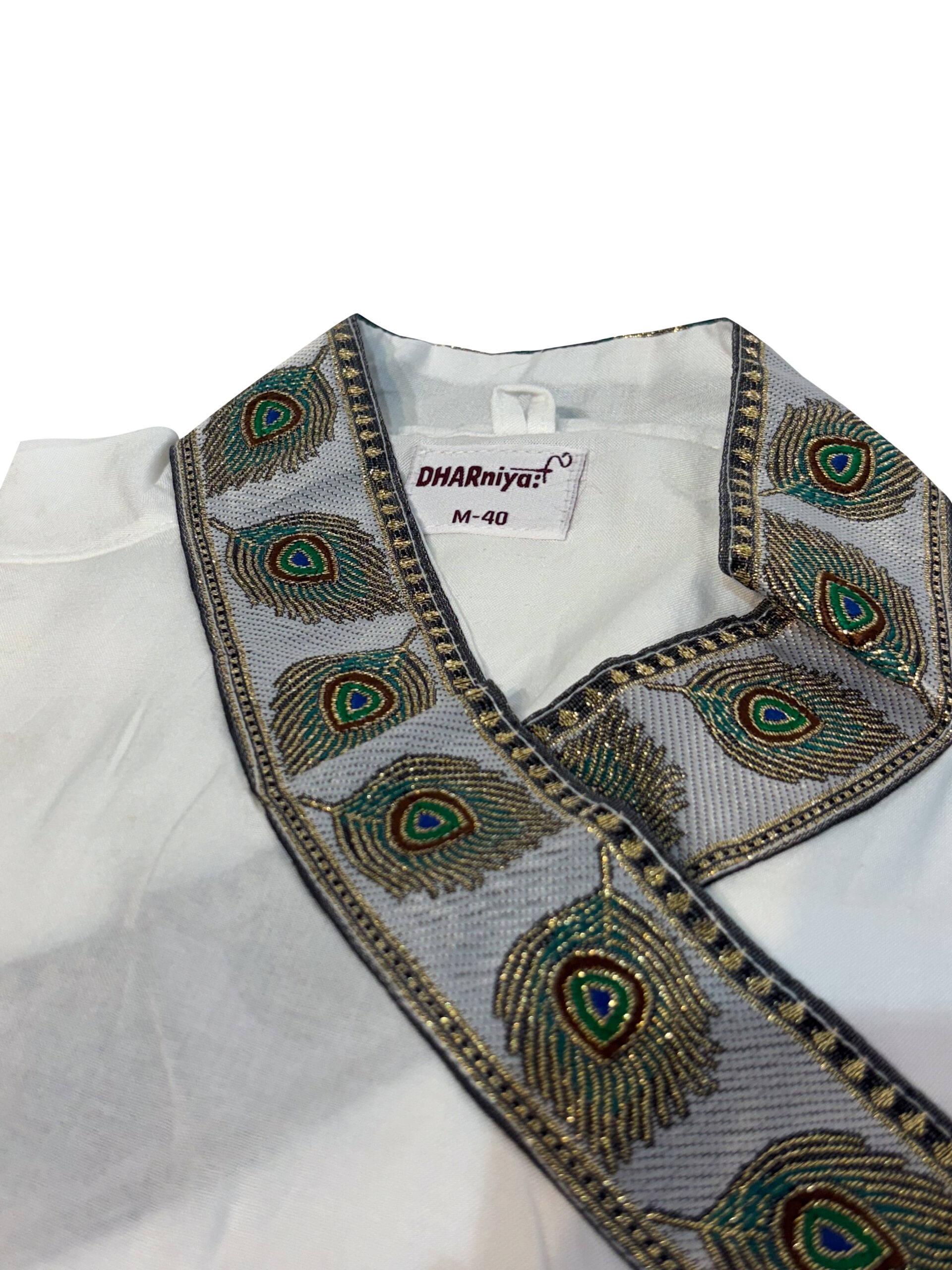 प्रीमियम भागलपुरी रेयॉन का धोती, दुपट्टा और बगलबंधी सेट, हाथ से बुने मोरपंख किनारों के साथ। हल्का, आरामदायक और पारंपरिक शिल्प का अद्वितीय संगम—त्योहारों और सांस्कृतिक समारोहों के लिए उत्तम।